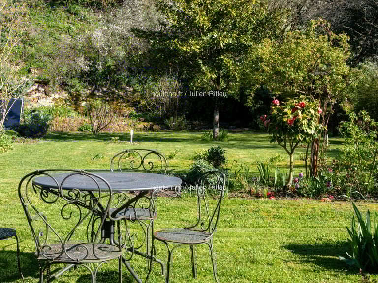 A bucolic and private haven of over 3,246 m², carved from ancient rock, wooded, blooming and fully enclosed. South-facing terrace, kitchen garden, well and a pool potential. A true sanctuary. Opposite the house, on this quiet dead-end lane, a plot provides easy parking for 5 vehicles or storage for a boat - which is a rare and practical asset, especially appreciated given the proximity of the Trieux river and the sea. ⚓