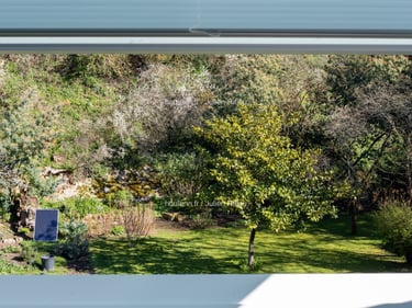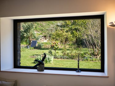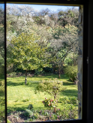 Des ouvertures généreuses créées lors de la rénovation inondent ces espaces de lumière naturelle et offrent de jolies vues sur le jardin et la nature environnante.
