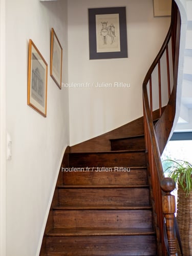 Un bel escalier d'époque mène à l'étage où se déploient 2 très belles chambres lumineuses et une 3ème pièce actuellement aménagée en dressing, pouvant aisément être transformée en chambre supplémentaire.